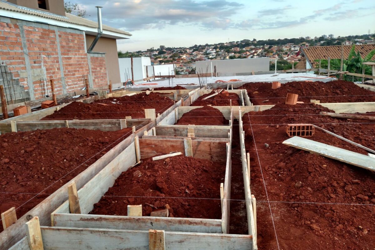 - Alicerce – Preparação do terreno e execução da fundação sólida.